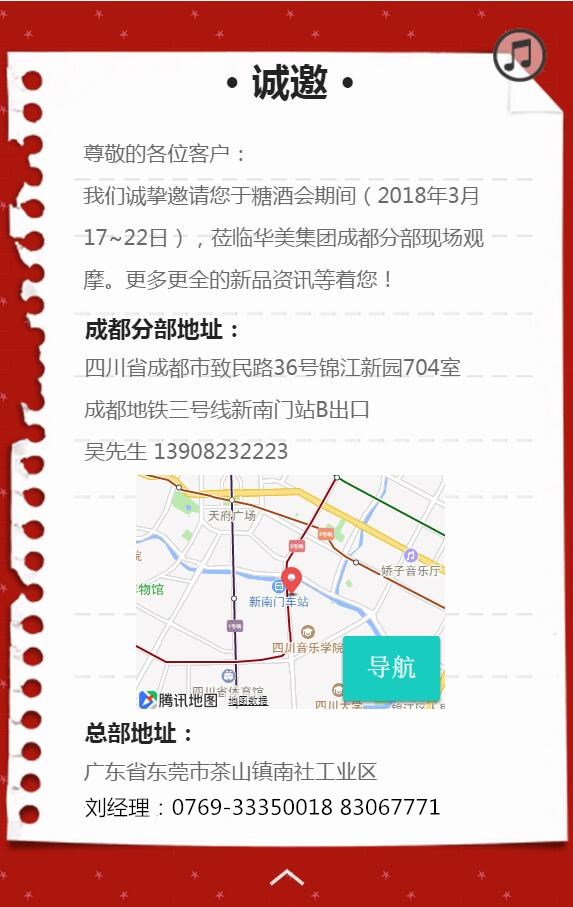 我們誠摯邀請您于糖酒會期間,蒞臨華美集團成都分部現場觀摩。