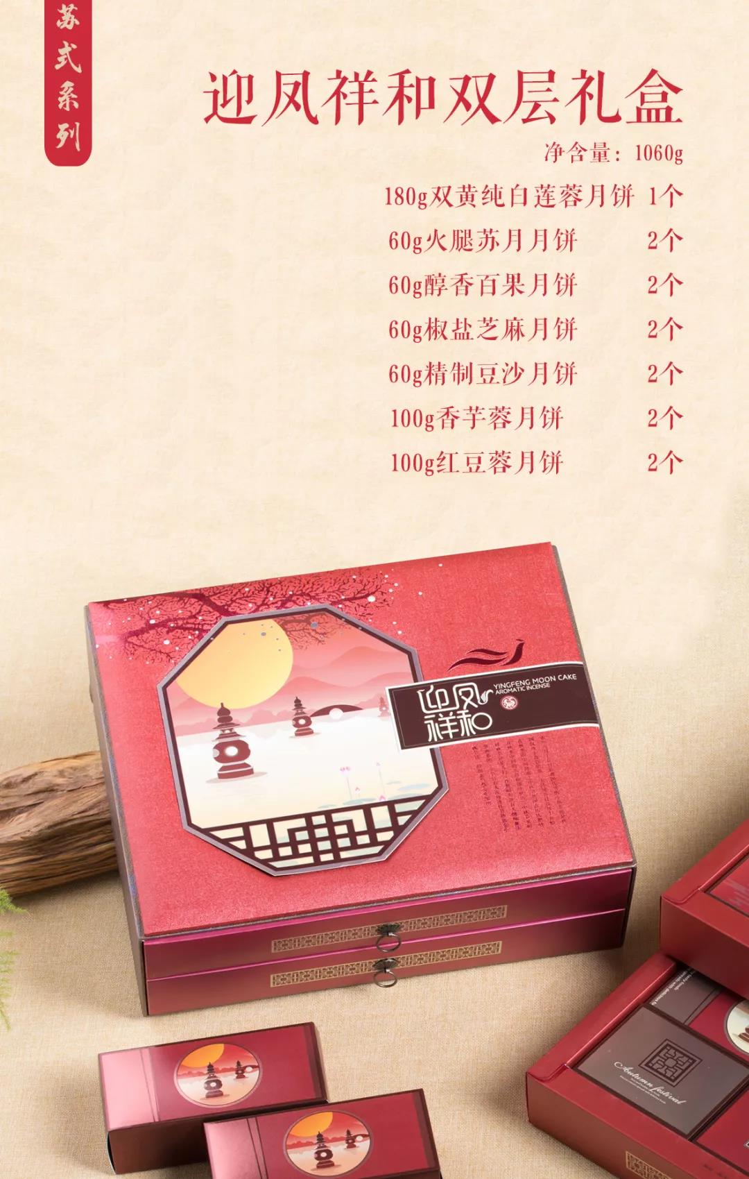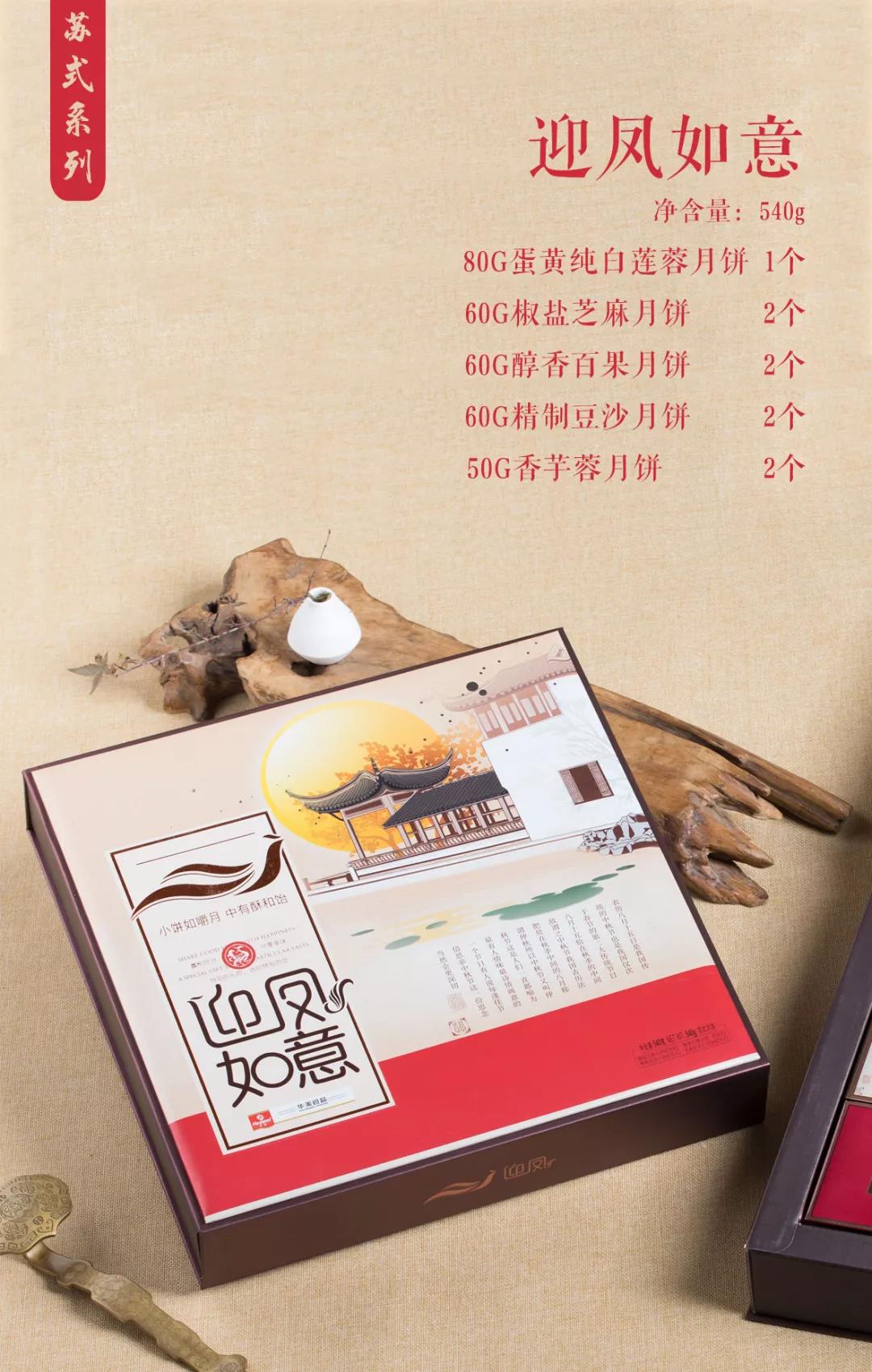 迎鳳祥和【雙層禮盒】、迎鳳吉祥、迎鳳如意、迎鳳呈祥、迎鳳經(jīng)典、家團(tuán)圓老月餅。六款經(jīng)典禮盒,每一個(gè)角度都流露出江南韻味,全新的月餅品類,各有千秋。