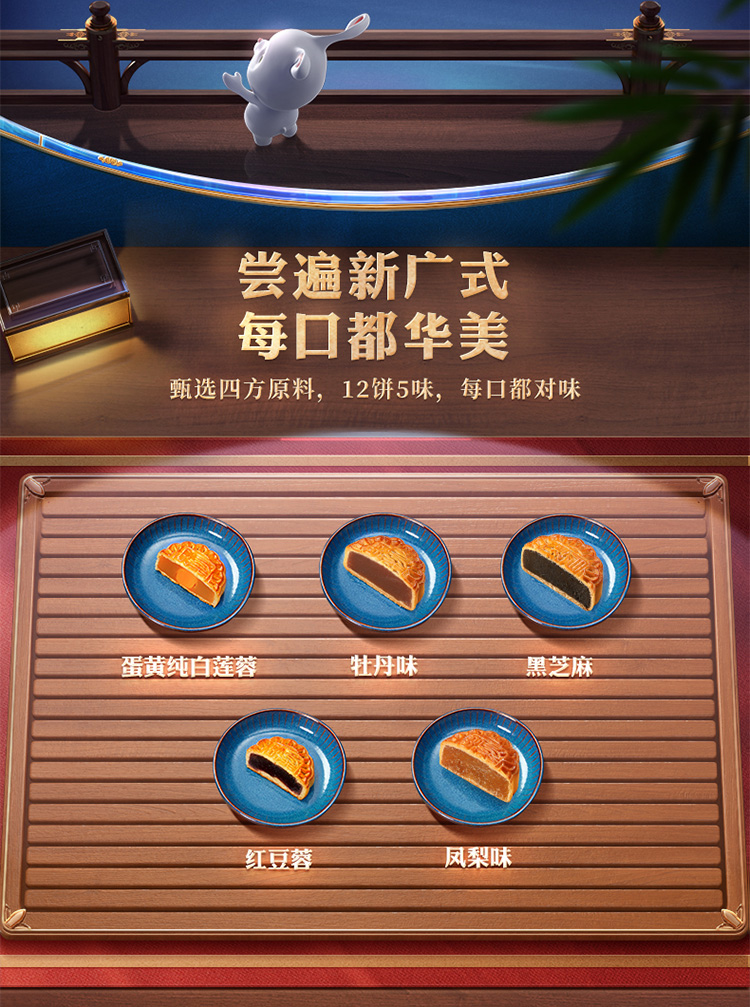 1蛋黃純白蓮蓉月餅80克X1,牡丹花味月餅50克X3